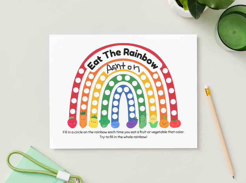 Encourage your child to explore different fruits and vegetables while having fun with this vibrant and educational rainbow chart!